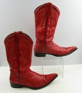 Mens Rancho Red Ostrich Print Pointed Toe Western Boots Size 7 5 Ee Ebay