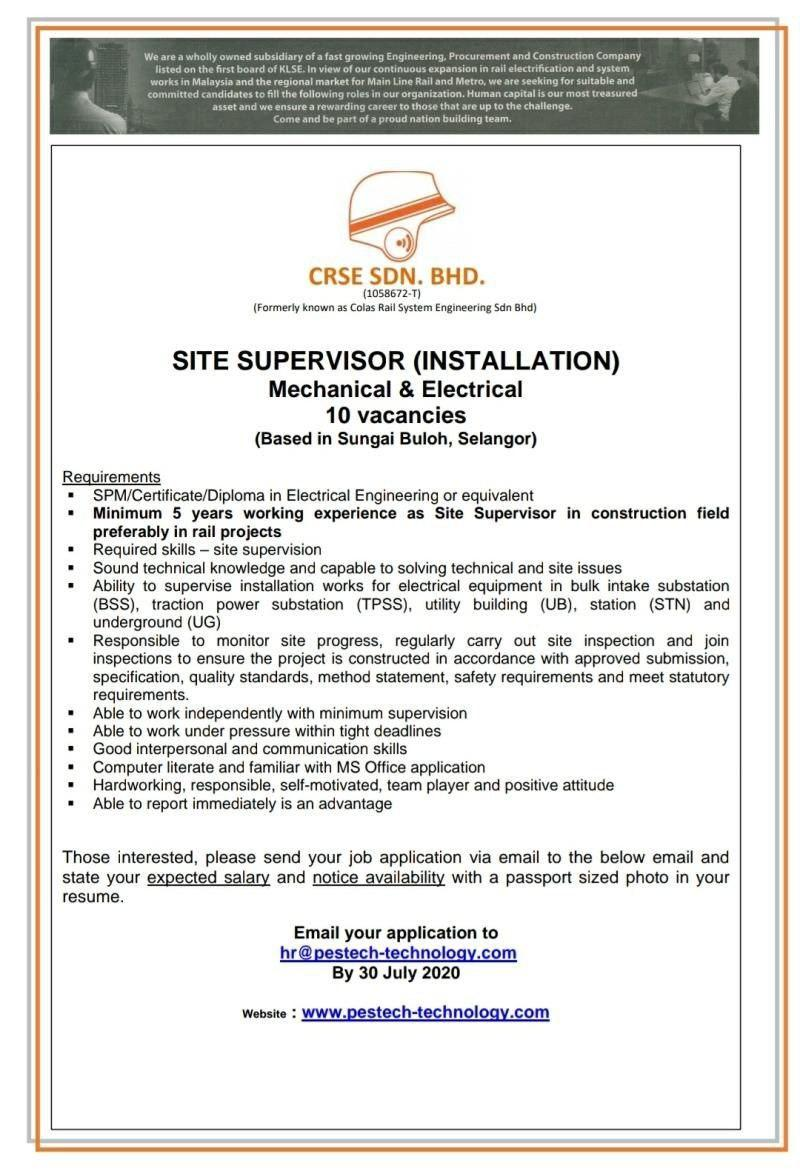 Possess valid Certificate Yellow. Jawatang Kosong Site Safety Supervisor - Urgent Hiring di ERS Energy Sdn Bhd Kerjayamy. If you still do not satisfy with a jawatan kosong above you can try to read more jobs list.